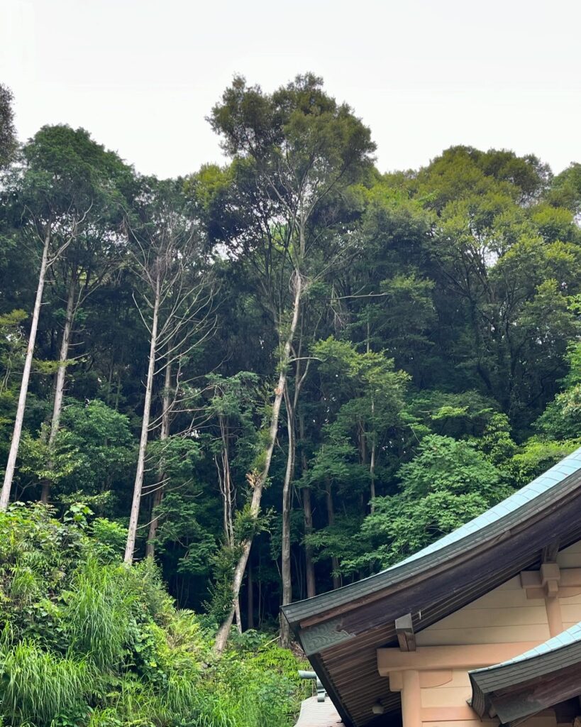 枝葉が社殿に一切触れないよう慎重に作業を進め、無事に伐採を完了いたしました!