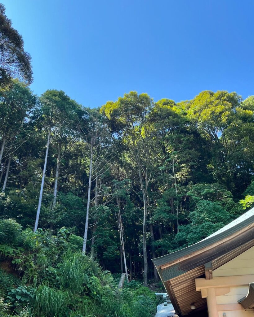枝葉が社殿に一切触れないよう慎重に作業を進め、無事に伐採を完了いたしました!